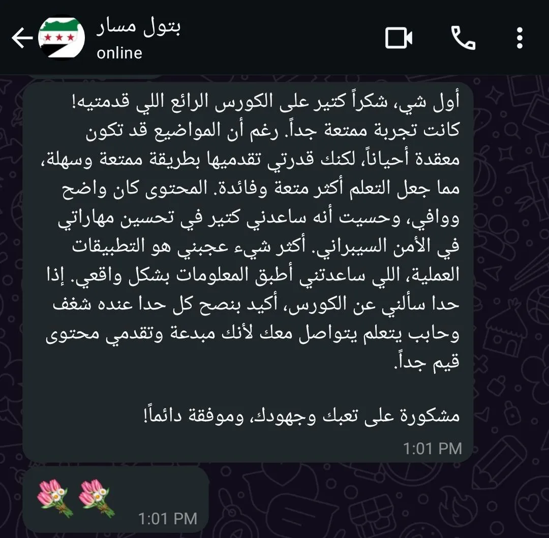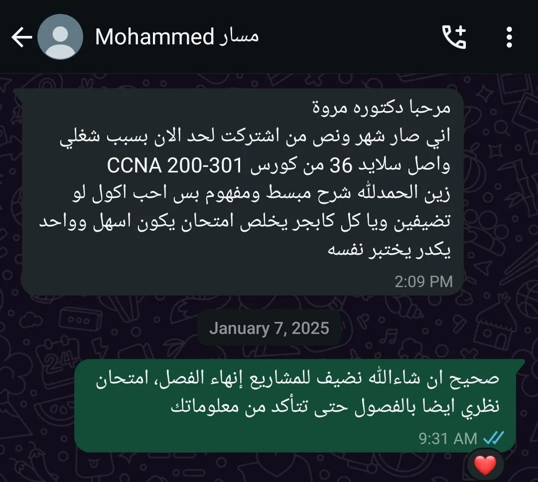 تطبّق فعليًا على بيئات واقعية وترافقك د. مروة بخبرتها، ودعم مباشر لحل التحديات.