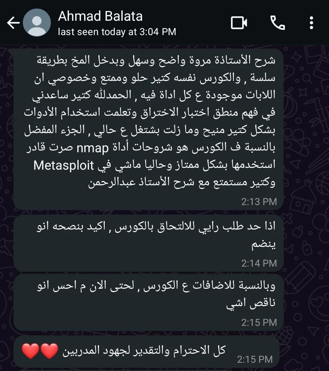 المحتوى عملي بنسبة تتجاوز 90% باستخدام أدوات مثل Kali Linux، Virtualization، Packet tracer, Nmap ، Metasploit burpsuite و غيرها الكثير
